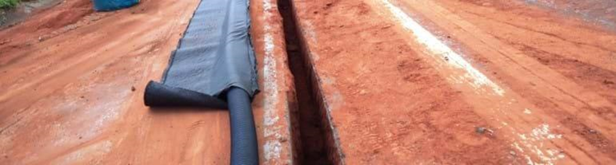 A instalação é simples: basta abrir a vala, posicionar o dreno e reaterrar. O produto inclui bolsa-guia para acomodação do tubo dreno perfurado (adquirido à parte).