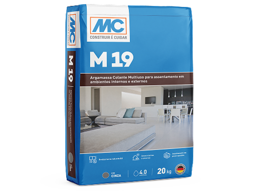 O M 19 é a argamassa colante AC II-D multiuso da MC-Bauchemie, projetada para o assentamento de diversos tipos de revestimentos em áreas internas e externas. Sua excelente trabalhabilidade facilita a aplicação e o manuseio da argamassa.