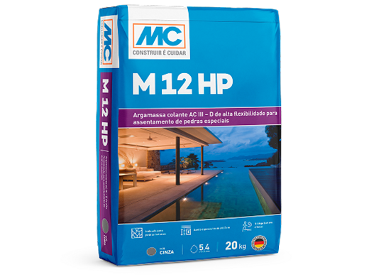 Desenvolvido para assentamento de pedras especiais, o M 12 HP é uma argamassa colante AC III – D de alta flexibilidade. A solução permite acomodar movimentações e deformações do revestimento e da base, evitando o descolamento das peças.