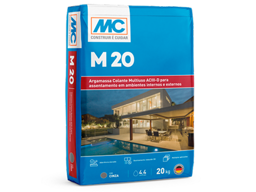 O M 20 da MC-Bauchemie é uma argamassa colante AC III-D multiuso de alta performance, projetada para o assentamento de diversos tipos de revestimentos em áreas internas e externas, como cerâmicas, porcelanatos, pastilhas, ladrilhos hidráulicos e pedras naturais (versão branca). Oferece alta qualidade e desempenho a um preço acessível.