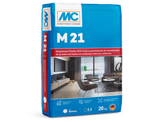 O M 21 da MC-Bauchemie é uma argamassa colante AC III-D e E de alta qualidade, projetada para o assentamento de revestimentos de grandes formatos (até 1,8 m x 1,8 m [≤ 3,24 m²]) em áreas internas e externas. Essa solução permite um tempo maior para o assentamento das peças, facilitando o trabalho.