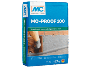 O MC-Proof 100 é um revestimento impermeável rígido, monocomponente, à base de cimento e polímero em pó. Misturado a água, forma uma argamassa polimérica indicada para impermeabilização em superfícies de concreto, argamassa e alvenaria, sujeitos à alta pressão de água positiva e negativa.