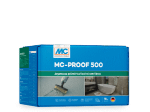 O MC-Proof 500 é uma argamassa polimérica impermeabilizante flexível, bicomponente, à base de polímeros acrílicos (resina termoplástica) com cimento e reforçada com fibras sintéticas. Forma uma membrana flexível indicada para impermeabilização de estruturas.